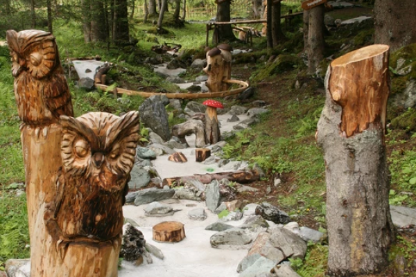 Eine „magische“ Welt ganz im Zeichen des Elements Wasser. Das Talschluss-Teufelswassers ist ein großzügig angelegter Themenpark mit vielen Spiel- und Wellness-Stationen. Ein Kneippbecken ist ebenso vorhanden wie ein Fischteich, Waldspielhäuschen, Mühlrad, Felsenpool, Höhlenweg, Alpenkräuterweg sowie Steindrachenplatz, Feen und Zwergenreich.