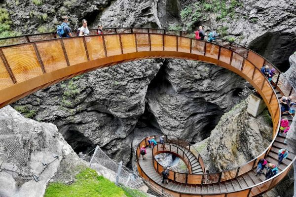 Besonderheiten/Tips: Die Klamm ist mit ihrer „Helix“-Treppe ein Social Media Star. In der Hauptsaison und an Schlechtwettertagen sollte man die Stoßzeiten von 10.00 bis 14.00 Uhr meiden.
